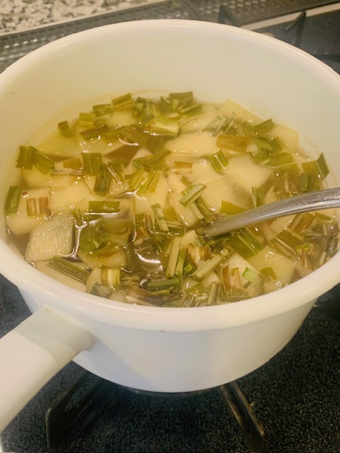 作り方はとても簡単で、りんごを薄切りにして、シナモンをひとかけと共にカップで煮立てます。今回は淡路島の無農薬のレモングラスと共にいれました。