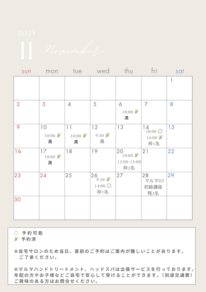 11月ご予約スケジュール